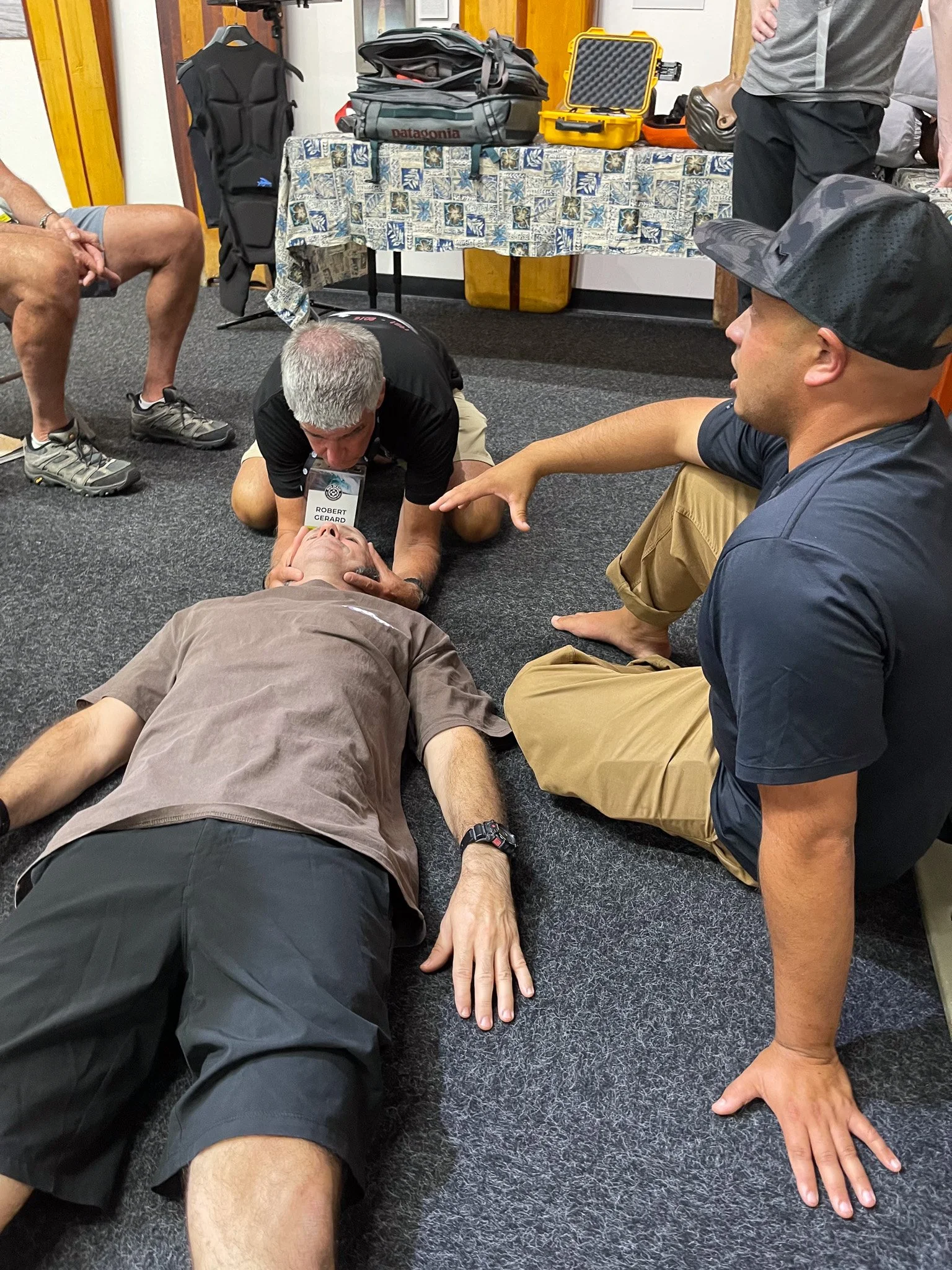 For the morning session, please bring the same items as Day 1. Additionally, please bring a yoga mat and/or towel to lay on for the Apnea Training module.